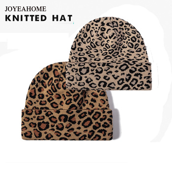 Berretto da donna con polsino in maglia morbida invernale caldo berretto con stampa leopardata con stampa digitale